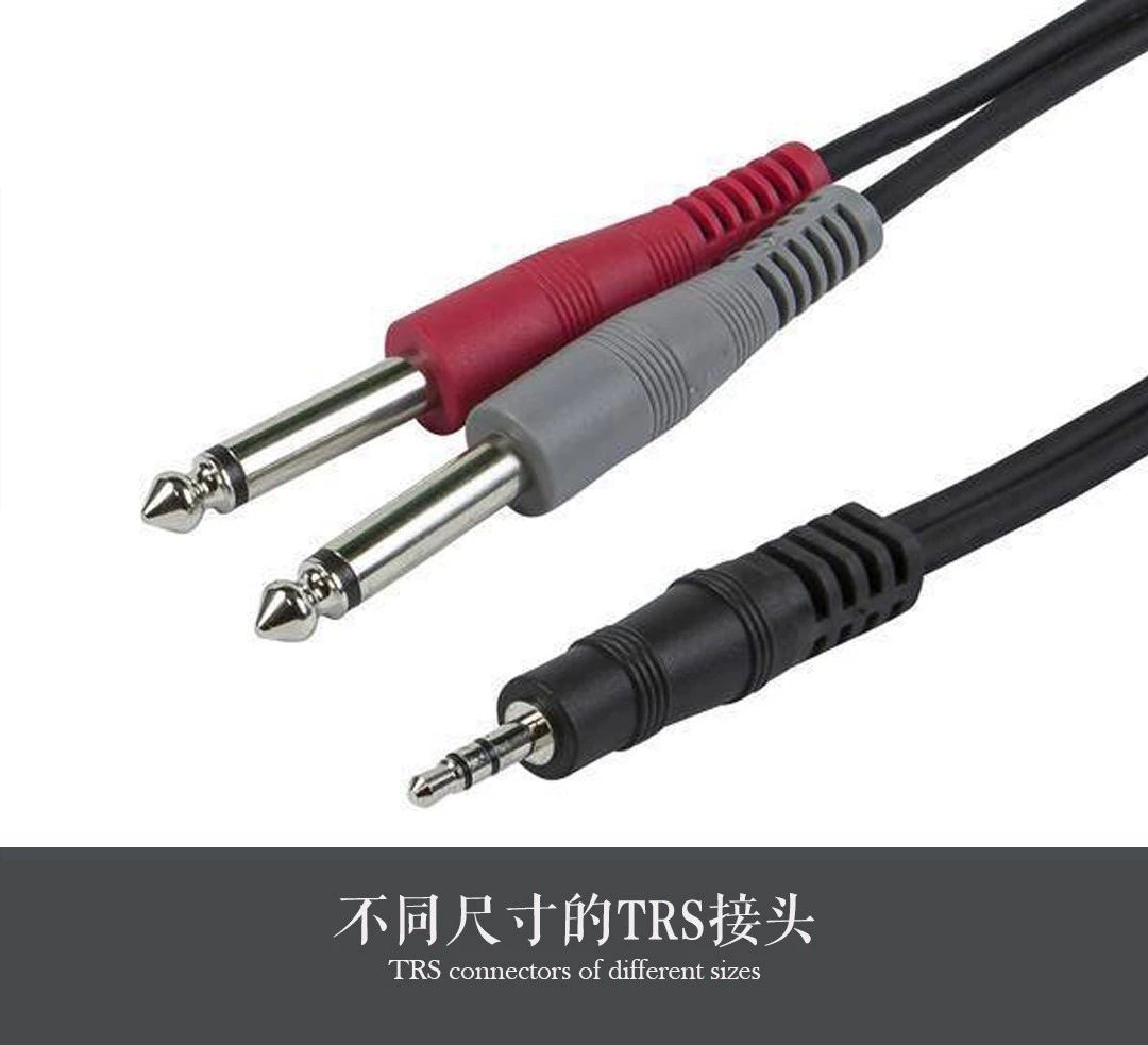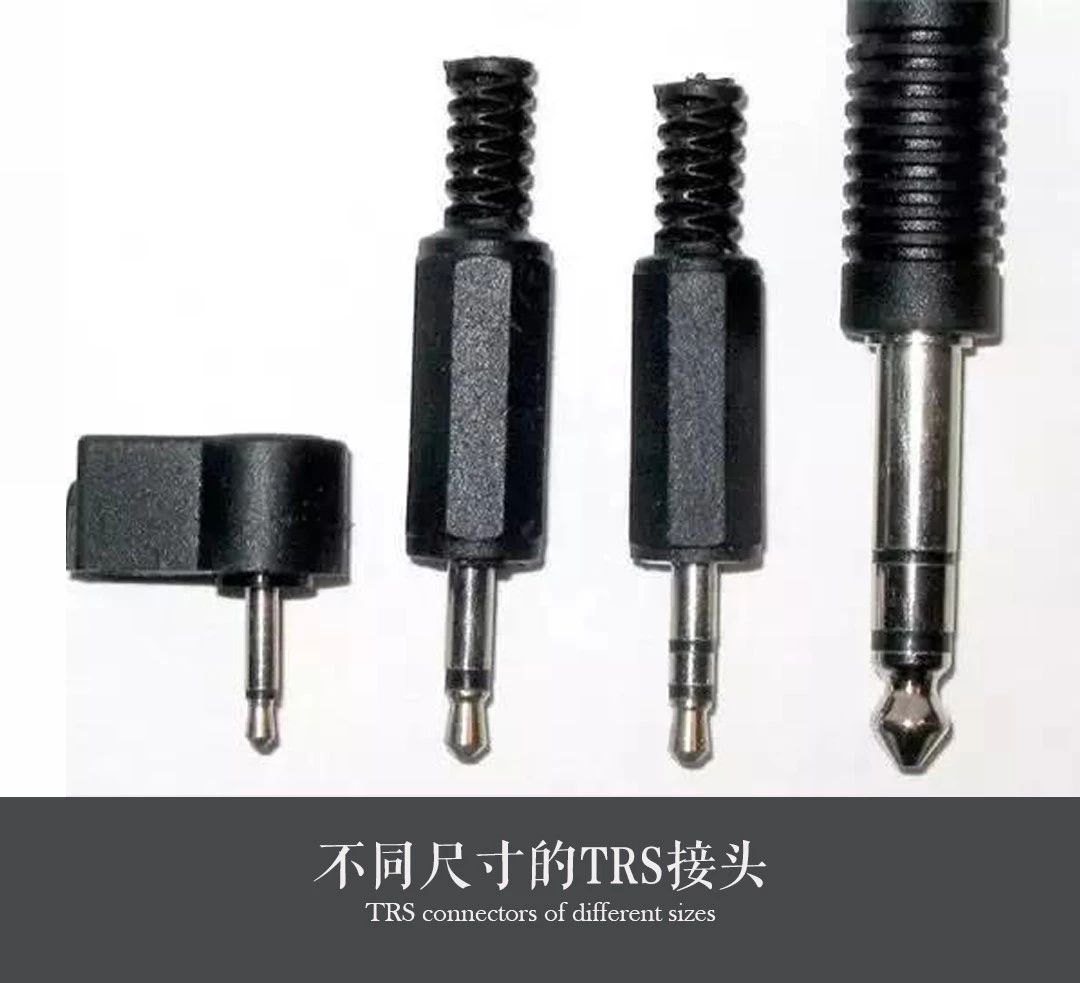 其實(shí),日常生活中我們見得最多的就是TRS接口,它的接頭外觀是圓柱體形狀,通常有三種尺寸:1/4"(6.3mm)、1/8"(3.5mm)、3/32"(2.5mm)。